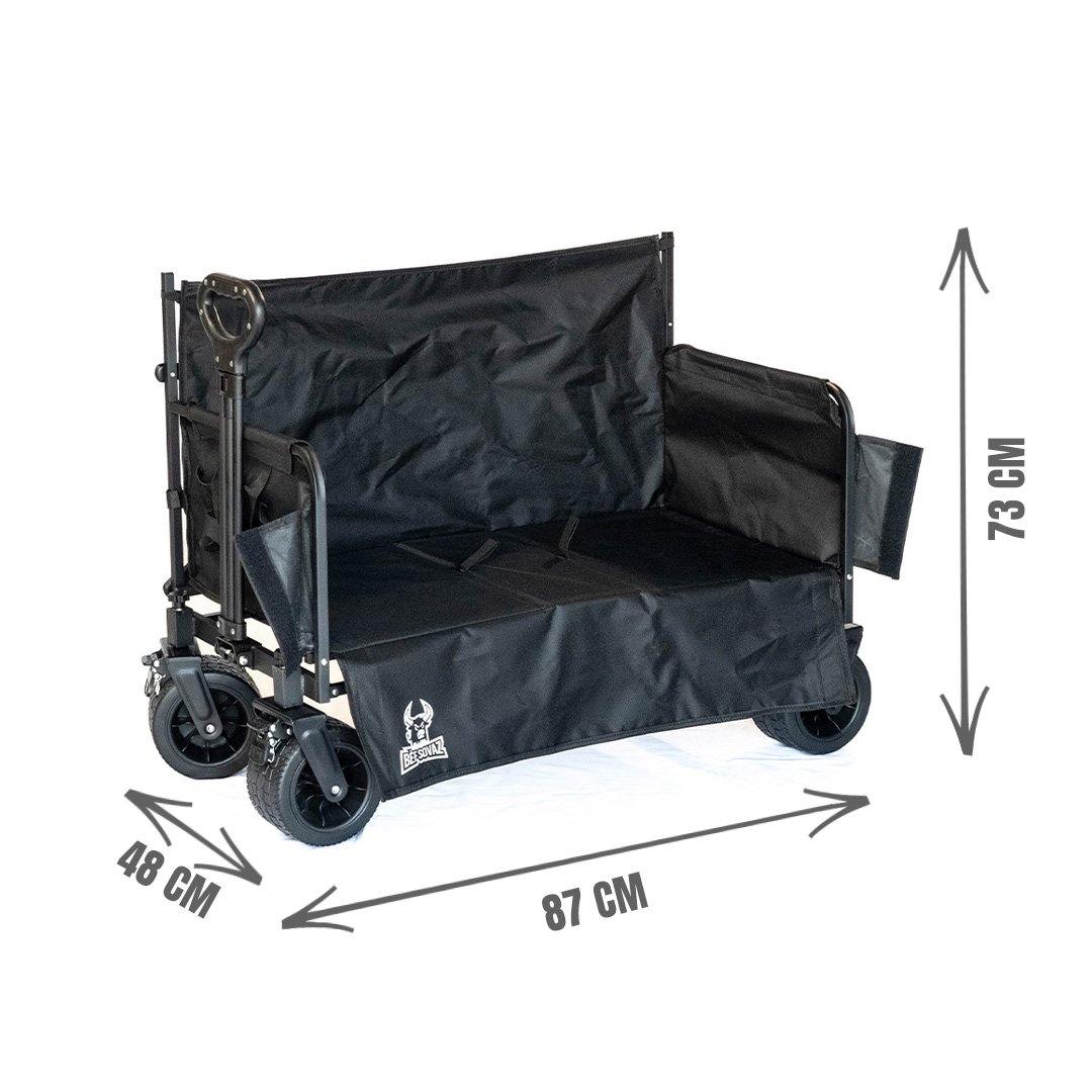 Chariot pliable modulable, conçu pour se déplier et offrir une assise type canapé lors de vos sorties. Pratique pour faire une pause à la plage, en camping ou lors d’événements en extérieur, il combine transport et assise en un seul produit. Robuste et stable, il se replie facilement pour le rangement et le transport.