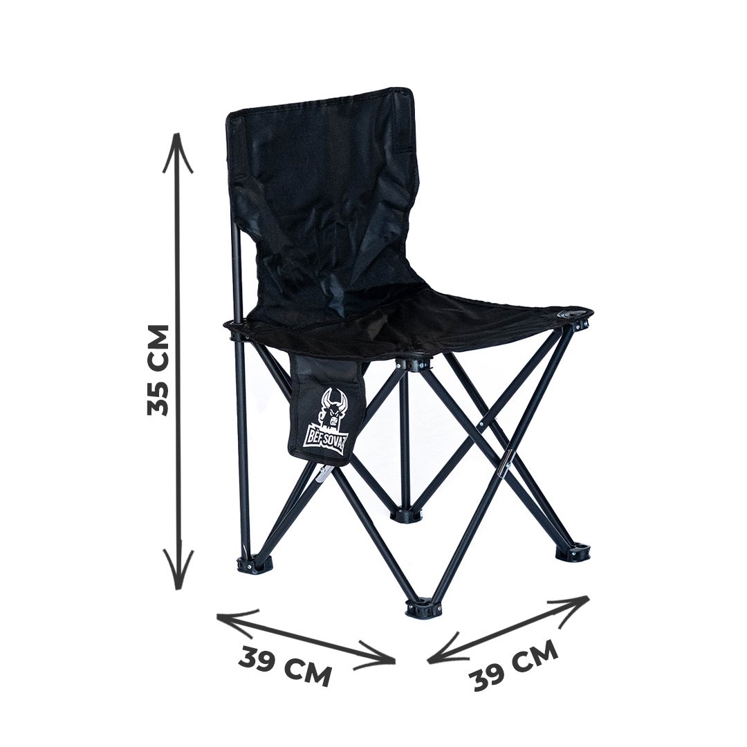 Chaise de camping compacte 39×39×35 cm, légère et facile à transporter, idéale plage, camping et pique-nique.